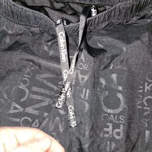 Elevate your activewear or casual look with these Calvin Klein women's shorts in size 2XL. The black blended fabric shorts feature a colorful all-over print of the Calvin Klein logo and have a flat front. They are perfect for gym and training, walking, or running and jogging. The 3.5-inch inseam and adjustable waistband with a 38-inch waist size offer a comfortable and regular fit.