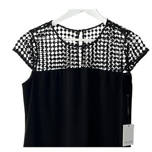 CALVIN KLEIN WOMENS SIZE 10 SEQUIN KNIT YOKE CAP SLEEVE SHIFT DRESS BLACK NEW