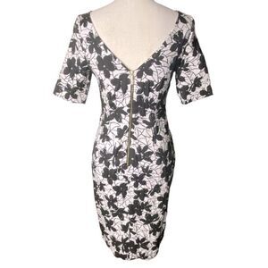 CALVIN KLEIN Wm’s Sz 6 Black White Floral Jacquard Stretch Retro Sheath Dress