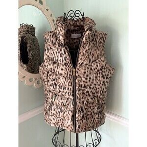 CALVIN KLEIN Women Animal Print Lightweight Puffer Vest Full Zip Size XL