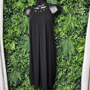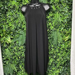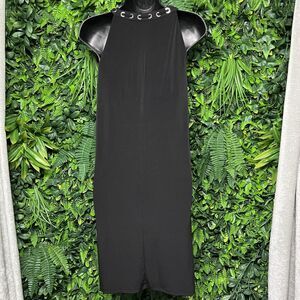 CALVIN KLEIN Women Dress 2 Black High Neck Grommet Accent A Line Shift 1974
