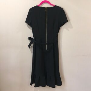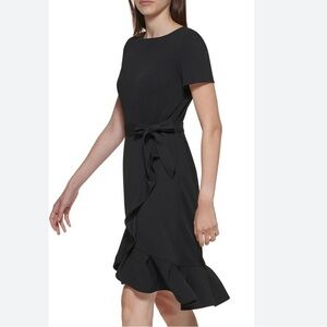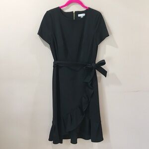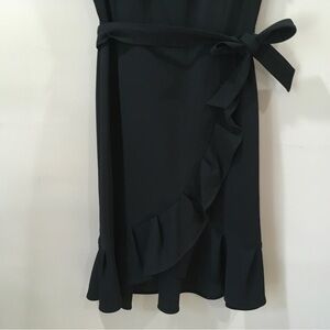 CALVIN KLEIN Womens Black Crepe Stretch Belted Ruffle Faux Wrap Dress Size 4