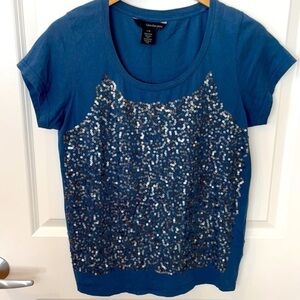 CALVIN KLEIN | Women’s Blue & Silver Sequin Shirt Size Large