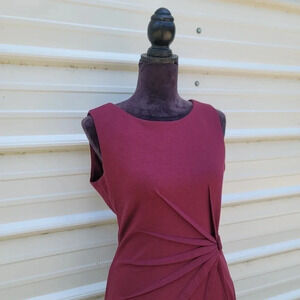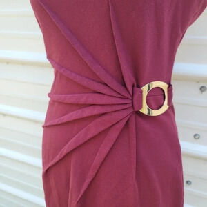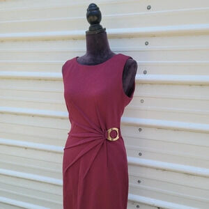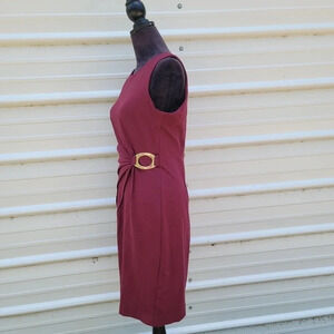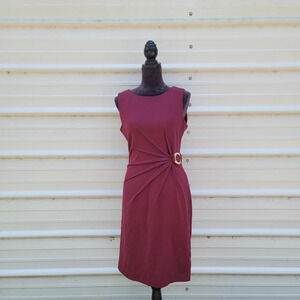 CALVIN KLEIN Womens Burgundy Sleeveless Sheath Dress Gold Accent Business Sz 10