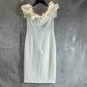 CALVIN KLEIN Women's Cream Ruffle Off-The-Shoulder Knee-Length Sheath Dress SZ 2