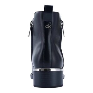 The Calvin Klein deniece is a classic ankle boot with a logo embossed side zipper. The iconic silhouette is perfect for everyday with the sleek almond toe and low block heel. Founded in New York in 1968, Calvin Klein elevates everyday essentials to globally iconic status.