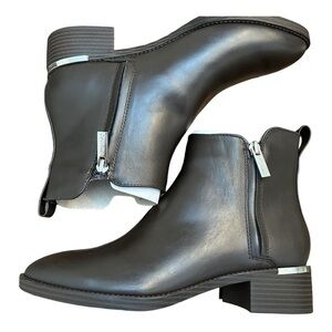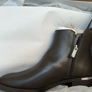 CALVIN KLEIN Women's Deniece Block Heel Ankle Booties in brown Never worn. Multiple sizes available. Some sizes have damaged or missing boxes. Model pic to depict style only. Boots are brown.