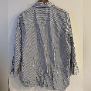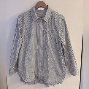 Great condition CALVIN KLEIN Women’s Gray & White Striped Zip Up Collared Long Sleeve Shirt