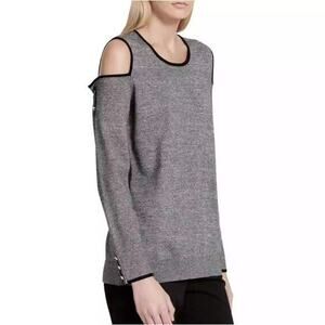 CALVIN KLEIN Women's Gray Contrast-trim Cold-shoulder Sweater Top Size M