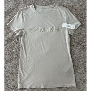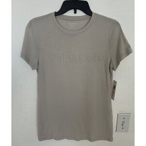CALVIN KLEIN Women’s Logo Graphic Tee PORCINI Size S Short Sleeve New
