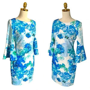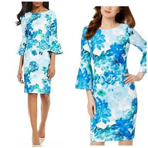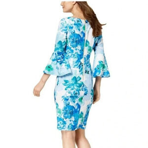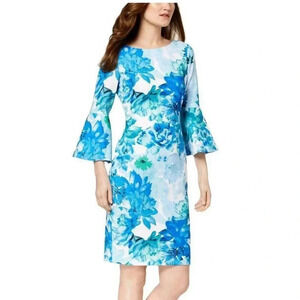 CALVIN KLEIN | Women's Scuba Crepe Floral-Print Bell-Sleeve Sheath Dress Size 4