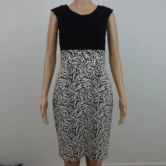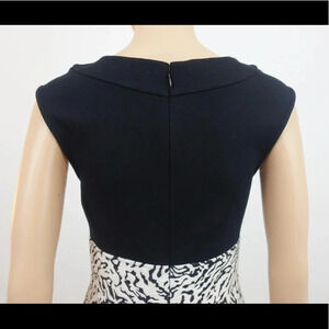 Nice color block dress. Black on the top and cream color with black prints on the bottom. Size:4 bust:30’ waist:28’ hips:36’ length:36’ C0011D