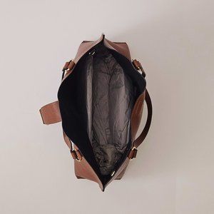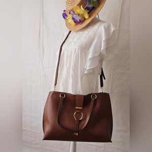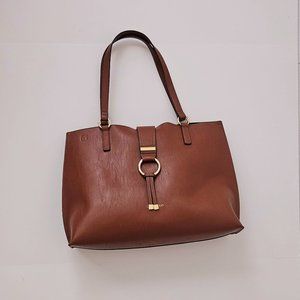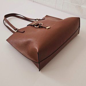 Reversible faux-leather tote comes complete with a matching clip-on pouch for elevated versatility.
