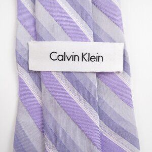 Calvin Klein men's lavender purple silver stripe silk skinny neck tie