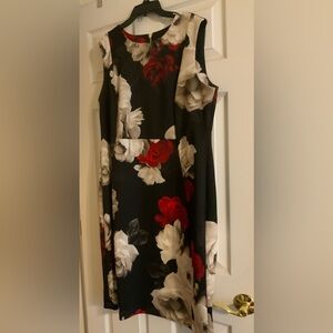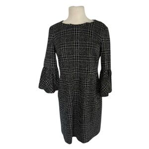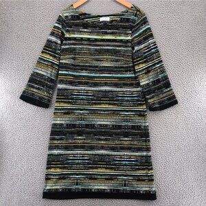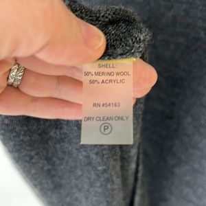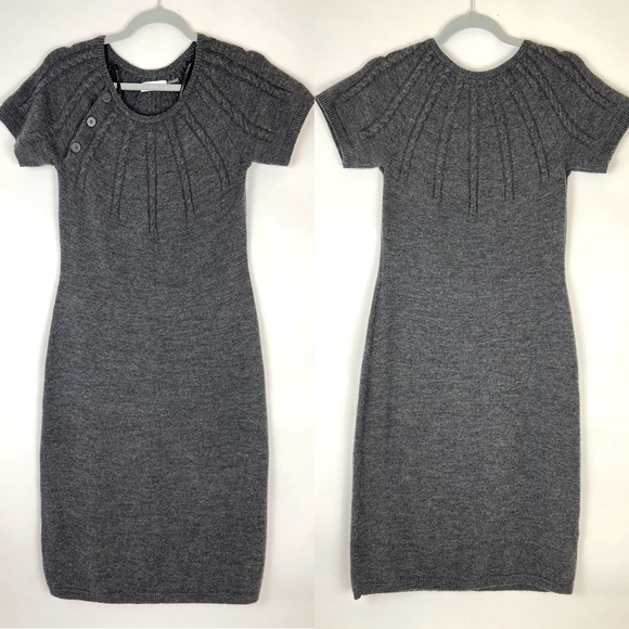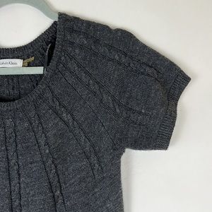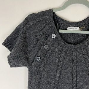 EUC! Calvin Klein dark gray short sleeve sweater dress. 3 decorative buttons on right front shoulder. Dress is a lil stretchy. 50% merino wool 50% acrylic. Tag states Dry Clean Only, but I washed in cold and dried flat.