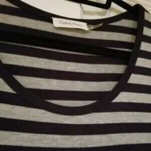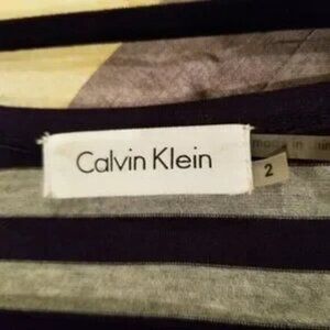 CALVIN KLEIN tshirt maxi dress navy and heather gray stripe three quarter sleeve