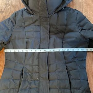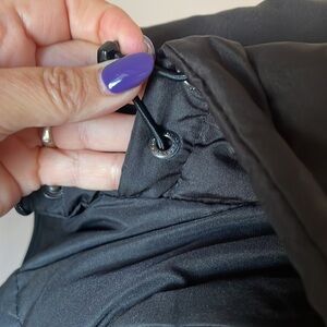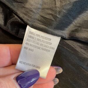 — up collar NOTE: coat was freshly washed. Only flaw, on the right side of up collar the down is on the back to left. Distribution is not even with other side SEE LAST 2 PICTURES … most likely when washed again and manipulation it will be fine.