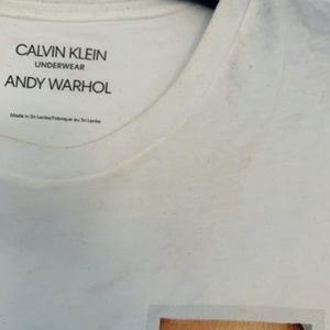 Limited Edition Calvin Klein x ANDY WARHOL Crewneck TSHIRT Exposures Polaroid TorsoCrew Neck, Short Sleeve, White, Small, 100% cotton, Gently pre-owned, no rips or smells, small areas yellowing at neck - please see photo's, MEASUREMENTS ( see last photo ): 1- 27 1/2" , 2 - 19 1/2", 3 - 17"
