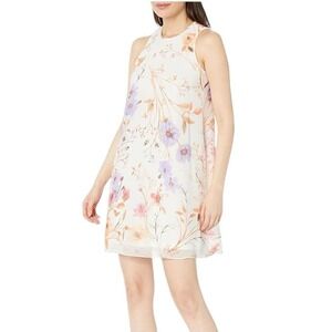 CALVIN KLEINFloral Chiffon Trapeze Dress In Ivory/ blue Multi color size 10P