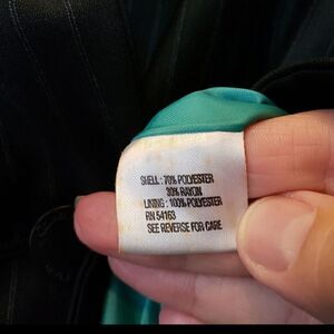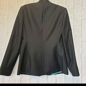 CALVIN KLEIN PINSTRIPE RUFFLED COLLAR CLASSIC BLAZER