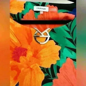 A stunning floral print is in full bloom throughout this plus size Calvin Klein top, designed with a hardware accent at the neckline.