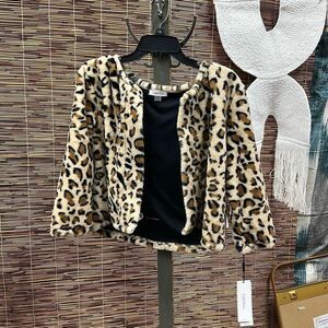 CALVIN KLEIN Womens Brown Fleece Animal Print Party Jacket XL