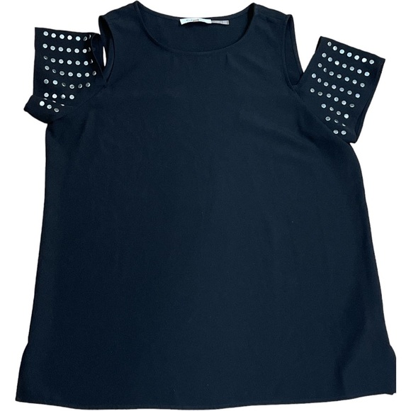 🐇 CALVIN KLIEN black silver studded cold shoulder top size medium