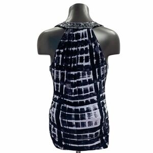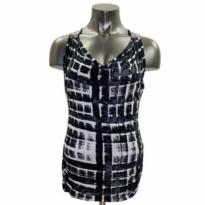 Calvin Klein Black & White Geometric Print Sleeveless Racerback V-Neck Tank Top Women's Size Small