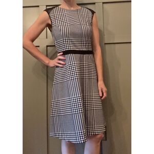 CALVIN Klein Black & White Houndstooth Plaid Career Dress Size 6
