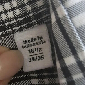 Calvin Klein Slim Fit Stretch Button Down Shirt Black and White Plaid Size L 16&1/2, 34, 35