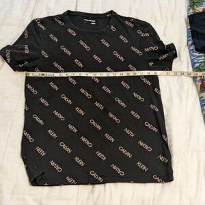 Calvin Klein graphic tee size Medium. the main color is a slightly faded black with pink writing of Calvin Klein. it is nice and soft. it has a vintage style