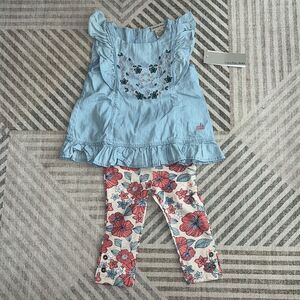 CALVIN KLEIN | Blue & Coral | CHAMBRAY TUNIC WITH FLORAL LEGGINGS