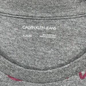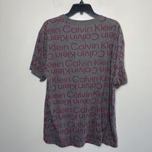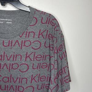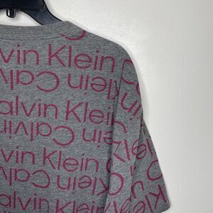 CALVIN KLEIN Shirt Mens XL All Over Spellout Logo Gray Pink Cotton Blend