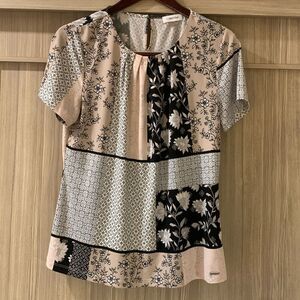 CALVIN KLEIN, blouse, short sleeve, button back., large