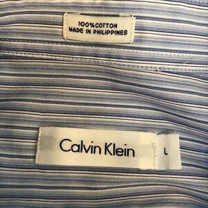 Blue Stripe Button Down Shirt Calvin Klein 100% Cotton, Men's L