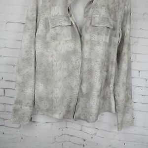 GREY SNAKESKIN PRINT LONG SLEEVE BUTTON DOWN TOP WITH TWO FRONT POCKETS SIZE XS BY CALVIN KLEIN PRE OWNED LIKE NEW CONDITION
