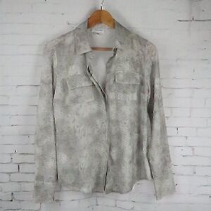 CALVIN KLEIN GREY SNAKESKIN PRINT LONG SLEEVE BUTTON DOWN TOP SIZE XS