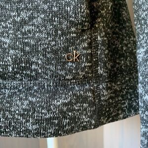 Black and white polyester knit jacket. Front zipper. Side slip pockets. One zipper breast pocket.