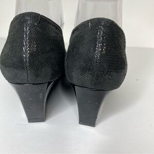 CALVIN KLEIN Women's Black Sue Mini Square Print Peep Toe Wedge Pumps Size 9M.