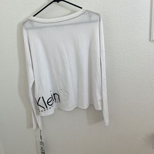 Long sleeve top made out of cotton, modal and spandex. White with black lettering