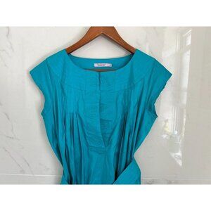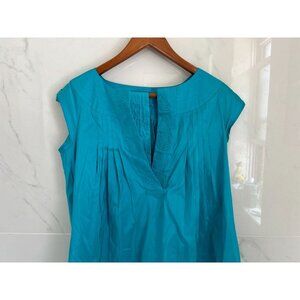 CALYPSO 100% Silk Tunic Top Blouse Turquoise Size Small