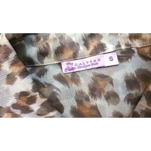 CALYPSO BY CHRISTIANE CELLE ANIMAL PRINT SHEER SILK TOP BLOUSE S
