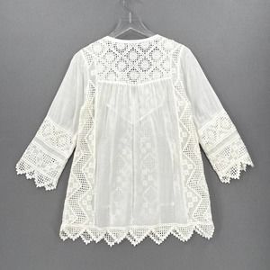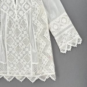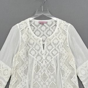 CALYPSO ST BARTH Shirt Womens Small White 3/4 Sleeve Embroidered Eyelet top