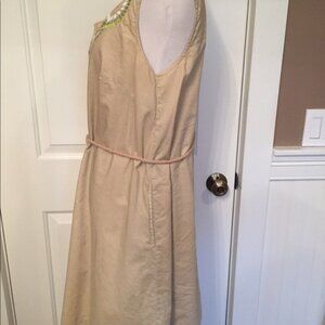 CALYPSO ST. BARTH FOR TARGET WOMEN’S DRESS TAN BELTED/ROPE SASH COTTON MINI SHIFT WITH PRETTY BEADED & EMBROIDERED NECKLINE SIZE MEDIUM CASUAL SUNDRESS