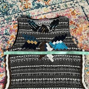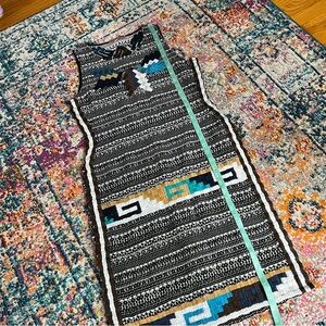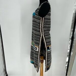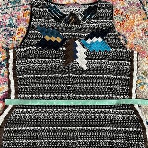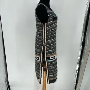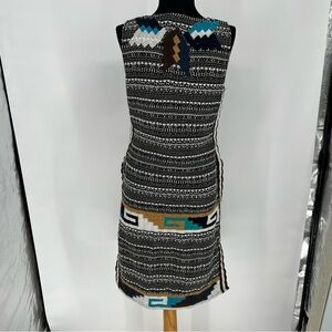 Calypso St. Barth tweed tunic with beautiful Embroidered work with south western motif, boho vives. short sleeve, knee length with super high slits on both sides, side zipper, meant to be layered over leggings or shorts.