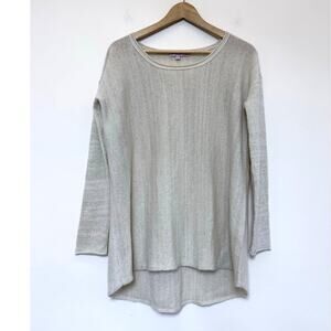 CALYPSO ST BARTH ecru beige gold metallic cashmere oversized sweater top - extra long tunic length - high lo hem - long sleeves
