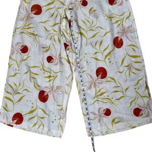 CALYPSO St. Barth 100% Linen Wide Leg Pants White Floral Print Size XL NWT