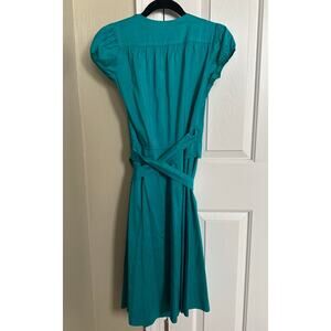 CALYPSO St Barth Silk Wrap Dress Teal V Neck Short Sleeve Tie Waist Size 0