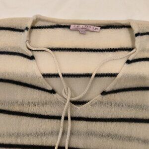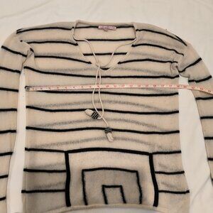 CALYPSO White and Black Striped Long Sleeve Cashmere Sweater Size XS