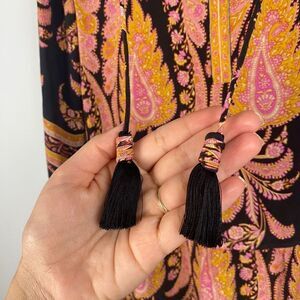 Calypso St. Barth printed silk mini dress. Tassel ties at neck.